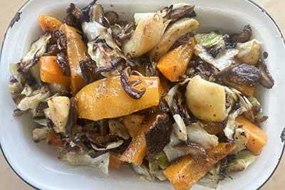 Roasted Butternut Squash, Cabbage, Shiitake Mushrooms and Apples with a Maple Cider Vinaigrette